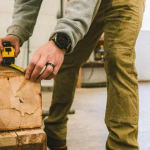 - Double-needle topstitching on both inseam and outseam for a rugged premium finish