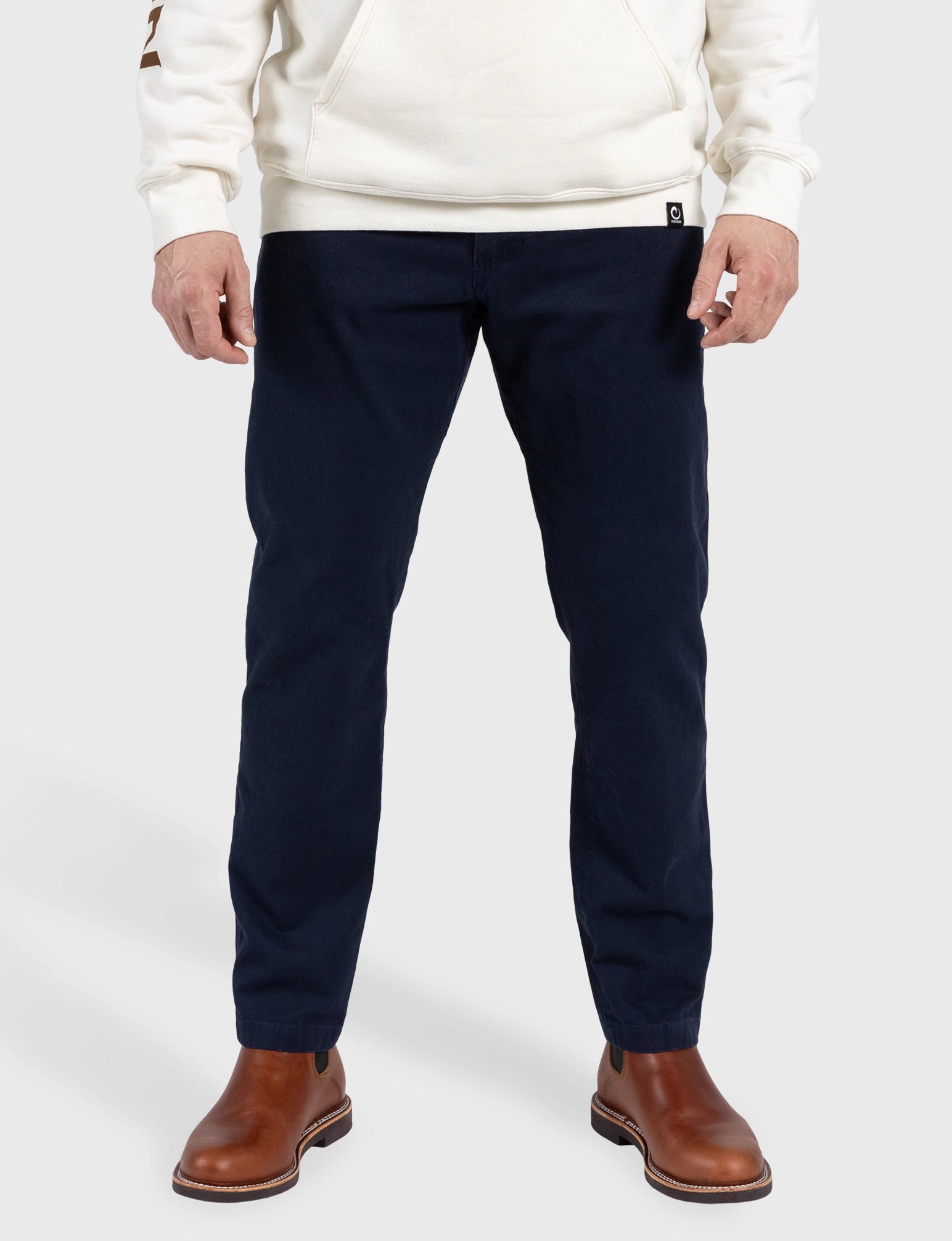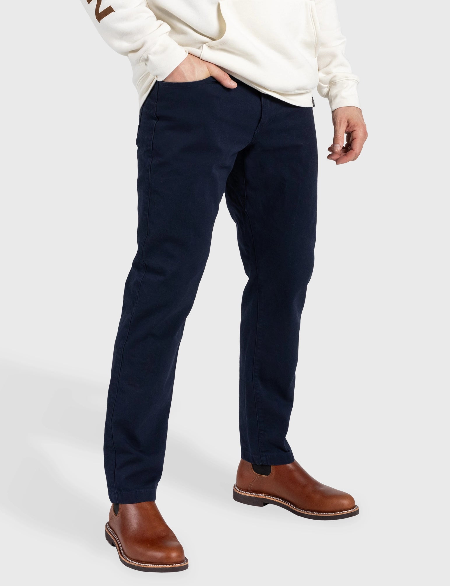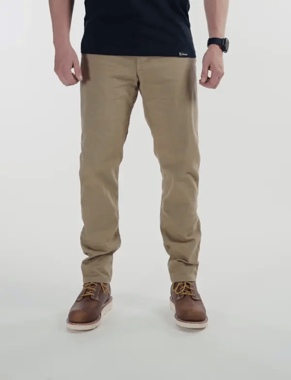 - Double-needle topstitching on both inseam and outseam for a rugged premium finish